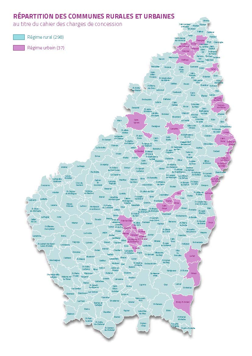 A titre dérogatoire, sur demande l’AODE et après acceptation du préfet, une commune peut être intégrée dans le régime rural : cette possibilité de dérogation « est limitée aux communes dont la population est inférieure à 5 000 habitants », et peut être motivée par « l’isolement ou le caractère dispersé de l’habitat ».